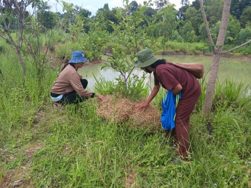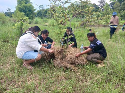 นางอัมพวัน เเสงทอง พัฒนาการอำเภอเมืองอำนาจเจริญ มอบหมายพัฒนากรประจำตำบล ลงพื้นที่ขับเคลื่อนการดำเนินงานตามภารกิจการดำเนินงานศูนย์เรียนรู้การพัฒนาคุณภาพชีวิตตามหลักทฤษฎีใหม่ ประยุกต์สู่ "โคก หนอง นา" ณ ศูนย์เรียนรู้ "โคก หนอง นา" (กิจกรรมขยายผลสู่ครัวเรือน ห่มดินด้วยฟาง และทำระบบน้ำหยด) แปลง โคกหนองนา นางฐิติวรดา ต้นแก้ว ม.2 ตำบลเหล่าพรวน อำเภอเมืองอำนาจเจริญ จังหวัดอำนาจเจริญ